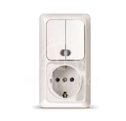 Блок ОП Олимп 1-кл. вык.+ роз. с заземл. верт. бел. UNIVersal О0038