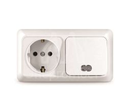 Блок выключатель 1-клав. с инд. и розетка 1-местн с заземл. LETO бел. горизонталь LEZARD 752-0200-170BIP